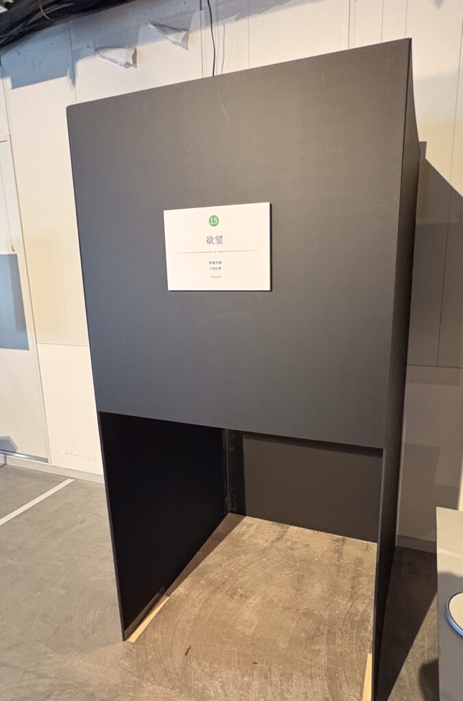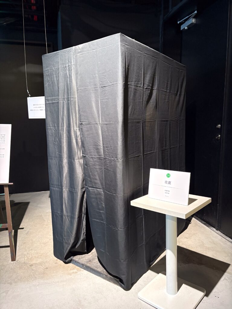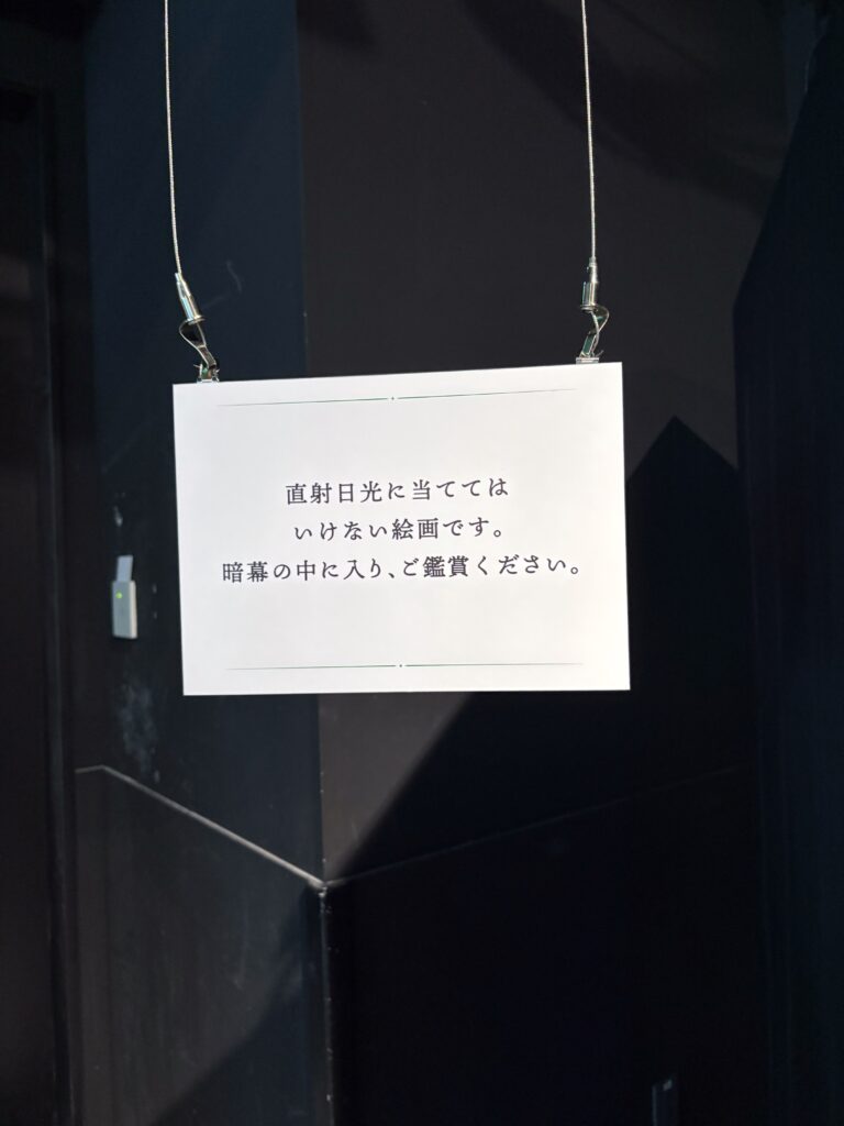 「直射日光に当ててはいけない絵画です。暗幕の中に入り、ご鑑賞ください」という文言とともに置かれた黒いボックスが視界に。