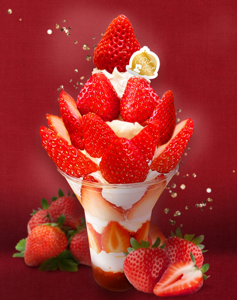 主役のあまりんを12 粒たっぷり使用した最初から最後まで苺を楽しめるプレミアム設計なパフェ!本物のあまりんだからこそ味わえる「甘味」「香り」を楽しめる1品になっている。
